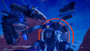 (奥の方から大型のロボットの体を所持する魚頭の兵器が出現(仮名として”タイタンフィッシュ”))