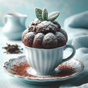 アーチャウ茶の茶葉を細かく砕いて練り込んだガトーショコラ生地をカップで焼き上げ、表面には粉砂糖で雪化粧を施しています。