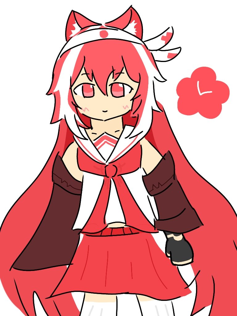 こんな感じで、赤髪、猫耳、日の丸ハチマキを巻いた獣人の女の子です。