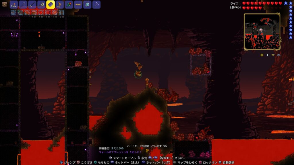別のワールドでしんくの大地のアイテムをコレクションとして集めてきて、サブ任務を達成したところでいよいよ「ウォール・オブ・フレッシュ」と対決!