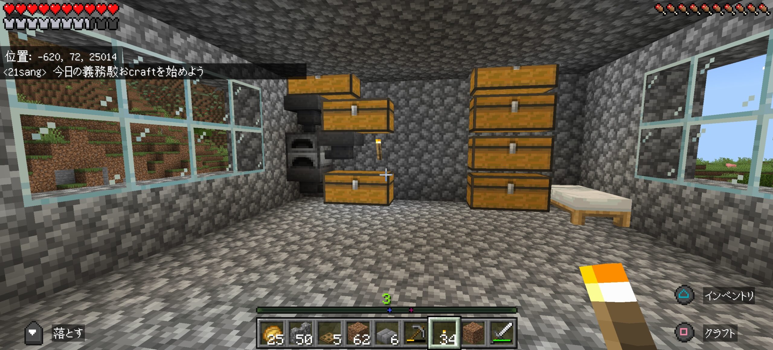 ずっと声がすると思ったら丸石製造機に隠れていやがった…皆はちゃんと戸締まりしようね。