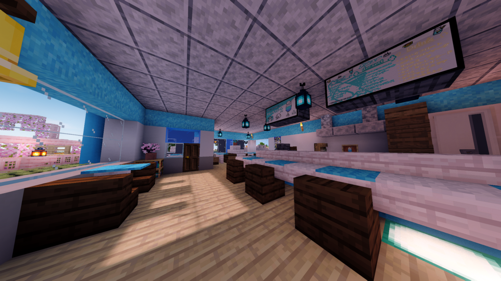「空色」の名に恥じぬ外見と内装で、天気がいいと外の「空色」を見ることができます。