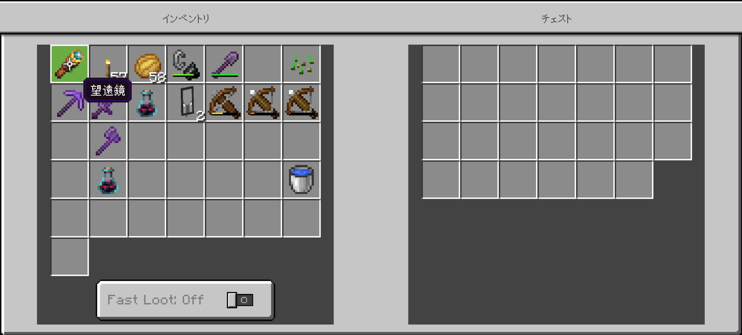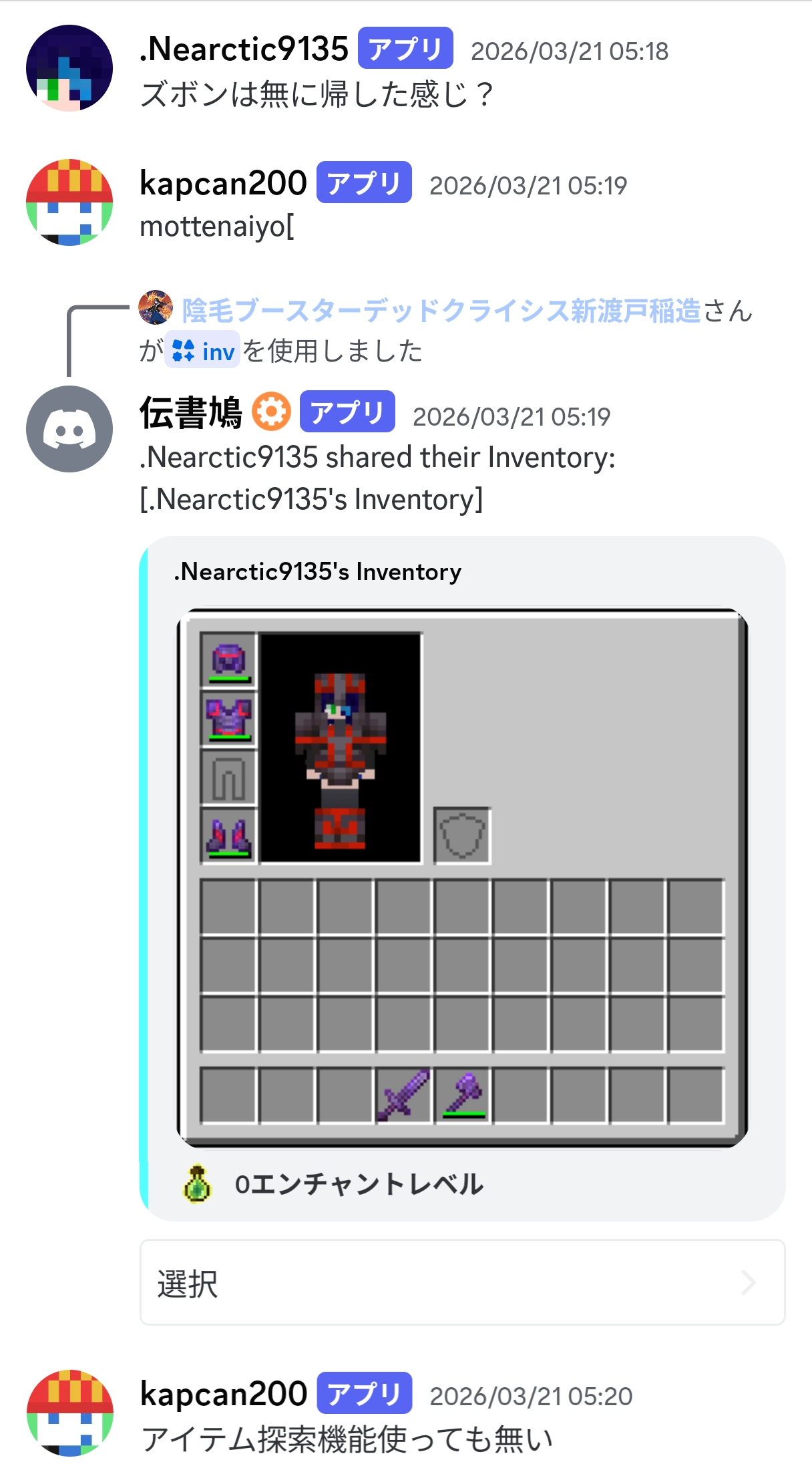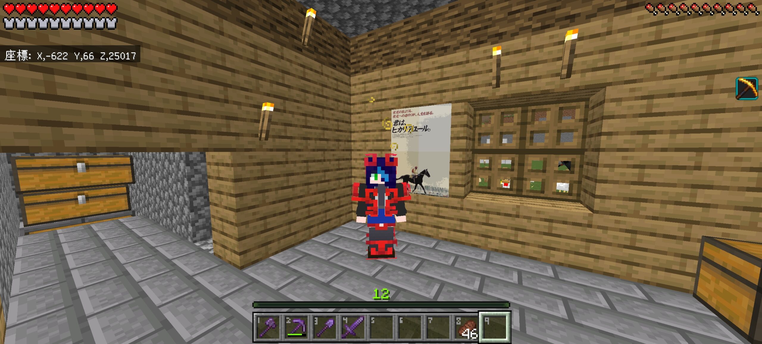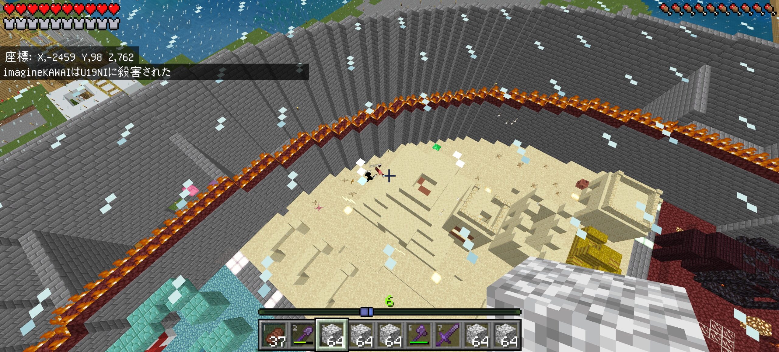防具は消えるし豚には襲われるしでいい事がなかった。カフェキンがなんか増殖したとかで余ったレギンスくれなかったらかなり凹んでたね。具体的には作りたてのネザライト防具にたまたま4つあった鍛冶型で装飾した装備を4時間で無くしたくらい。