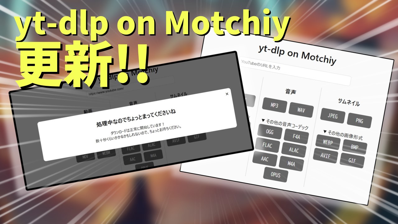 というわけで、以上はyt-dlp on Motchiyの更新ログでした!